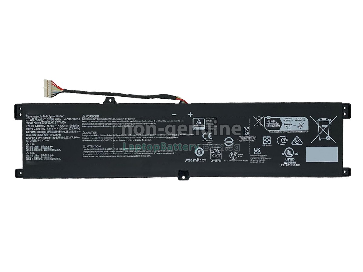 Buy with confidence! Our Website is your source for high quality MSI laptop batteries. This brand new 65Wh(4 cells) replacement MSI SWORD 16 HX B13VFKG-469NL Li-Polymer battery is made with high quality cells from Samsung. Each replacement battery for MSI SWORD 16 HX B13VFKG-469NL laptop has been tested on the MSI system before being dispatched and is 100% compatible with the original manufacturer's specification. When you buy our replacement MSI SWORD 16 HX B13VFKG-469NL battery, you're buying trust!