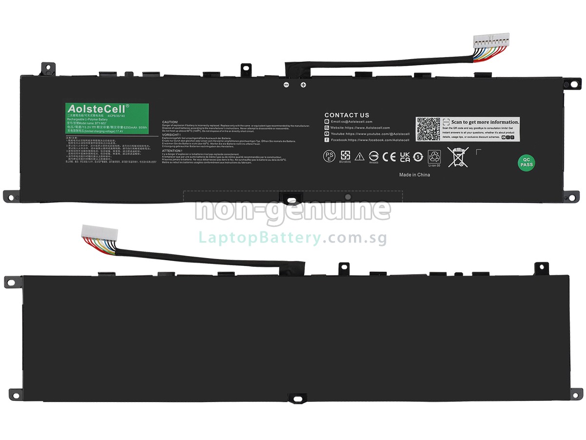 Welcome your patronage and thank you for purchasing this high quality replacement MSI VECTOR GP66 laptop battery at Laptopbattery.com.sg! Before placing an order, please make sure that the part number of your old MSI VECTOR GP66 battery is listed as below and has the same shape as our replacement VECTOR GP66 battery's images (please view the larger images for details).