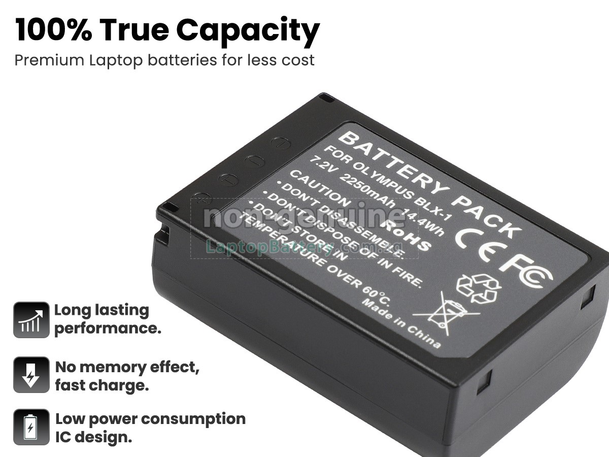 Buy with confidence! Our Website is your source for high quality Olympus batteries. This brand new 14.4Wh(2 cells) replacement Olympus OM-1 Li-ion battery is made with high quality cells from Samsung. Each replacement battery for Olympus OM-1 has been tested on the Olympus system before being dispatched and is 100% compatible with the original manufacturer's specification. When you buy our replacement Olympus OM-1 battery, you're buying trust!