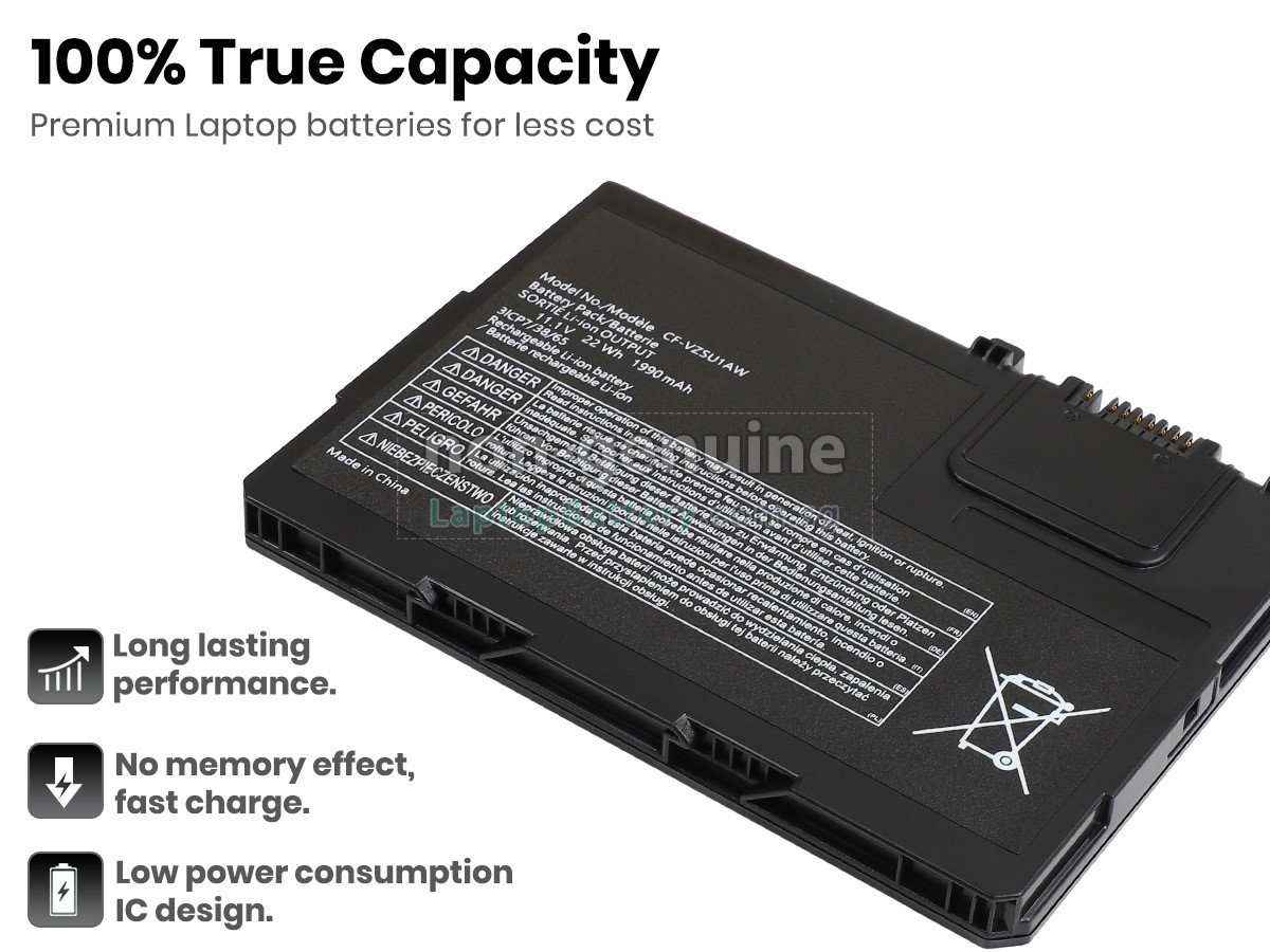 Buy with confidence! Our Website is your source for high quality Panasonic laptop batteries. This brand new 22Wh(3 cells) replacement Panasonic CF-VZSU1AW Li-ion battery is made with high quality cells from Samsung. Each replacement battery for Panasonic CF-VZSU1AW laptop has been tested on the Panasonic system before being dispatched and is 100% compatible with the original manufacturer's specification. When you buy our replacement Panasonic CF-VZSU1AW battery, you're buying trust!