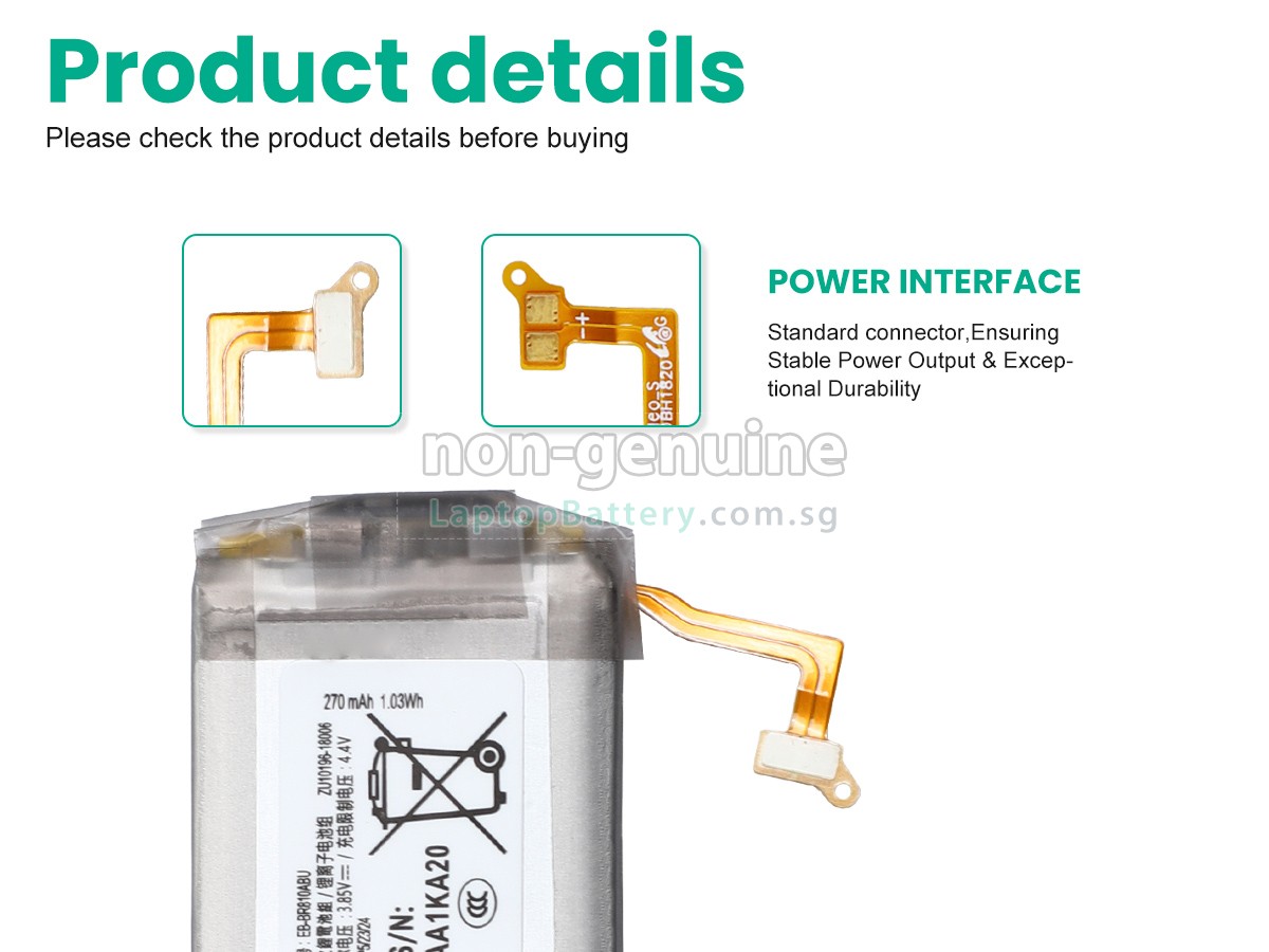 Welcome your patronage and thank you for purchasing this high quality replacement Samsung EB-BR810ABU watch battery at Laptopbattery.com.sg! Before placing an order, please make sure that the part number of your old Samsung EB-BR810ABU battery is listed as below and has the same shape as our replacement EB-BR810ABU battery's images (please view the larger images for details).