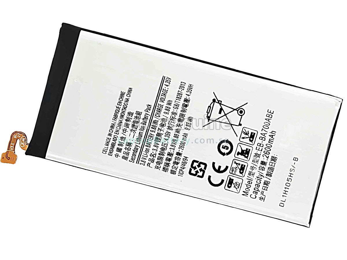 Buy with confidence! Our Website is your source for high quality Samsung batteries. This brand new 2600mAh(1 cells) replacement Samsung GALAXY A7 SM-A700L Li-ion battery is made with high quality cells from Samsung. Each replacement battery for Samsung GALAXY A7 SM-A700L has been tested on the Samsung system before being dispatched and is 100% compatible with the original manufacturer's specification. When you buy our replacement Samsung GALAXY A7 SM-A700L battery, you're buying trust!