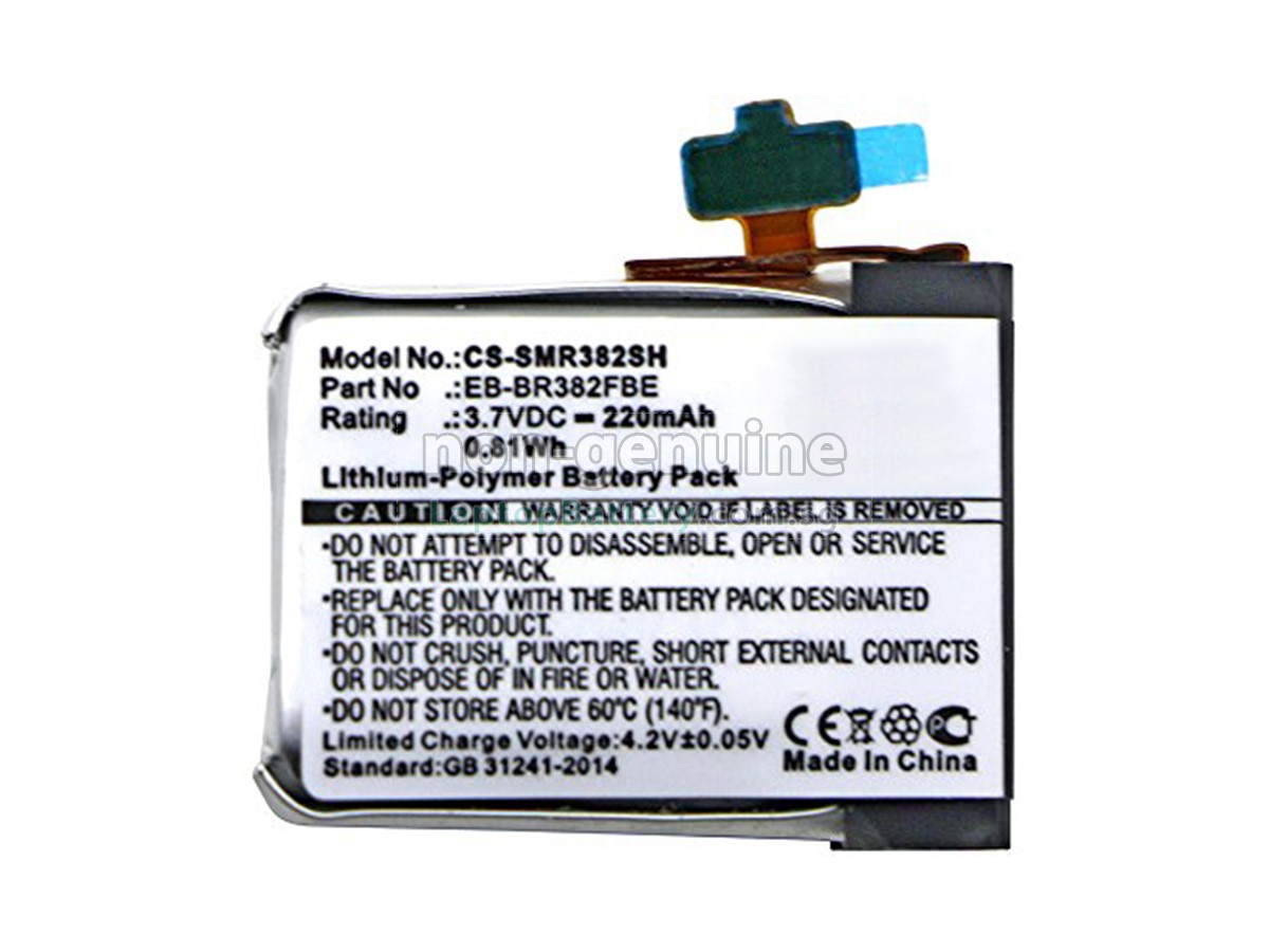 Welcome your patronage and thank you for purchasing this high quality replacement Samsung GEAR LIVE SM-R382 watch battery at Laptopbattery.com.sg! Before placing an order, please make sure that the part number of your old Samsung GEAR LIVE SM-R382 battery is listed as below and has the same shape as our replacement GEAR LIVE SM-R382 battery's images (please view the larger images for details).