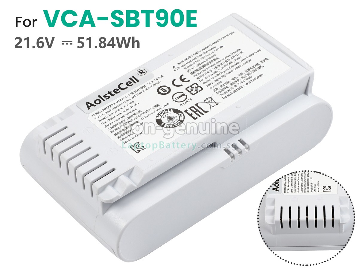 Welcome your patronage and thank you for purchasing this high quality replacement Samsung VCA-SBT90E vacuum cleaner battery at Laptopbattery.com.sg! Before placing an order, please make sure that the part number of your old Samsung VCA-SBT90E battery is listed as below and has the same shape as our replacement VCA-SBT90E battery's images (please view the larger images for details).