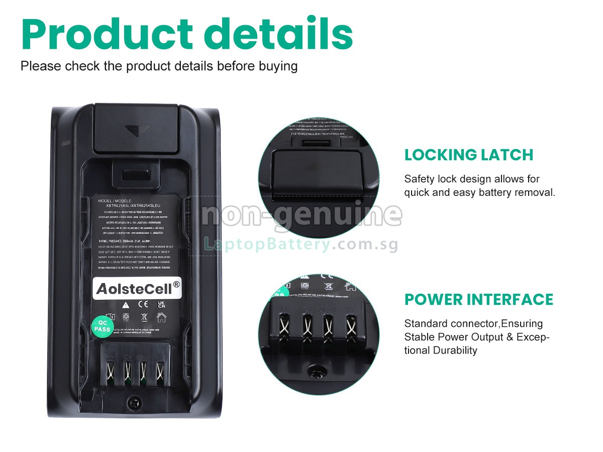 Welcome your patronage and thank you for purchasing this high quality replacement Shark XBTR625KSLEU vacuum cleaner battery at Laptopbattery.com.sg! Before placing an order, please make sure that the part number of your old Shark XBTR625KSLEU battery is listed as below and has the same shape as our replacement XBTR625KSLEU battery's images (please view the larger images for details).