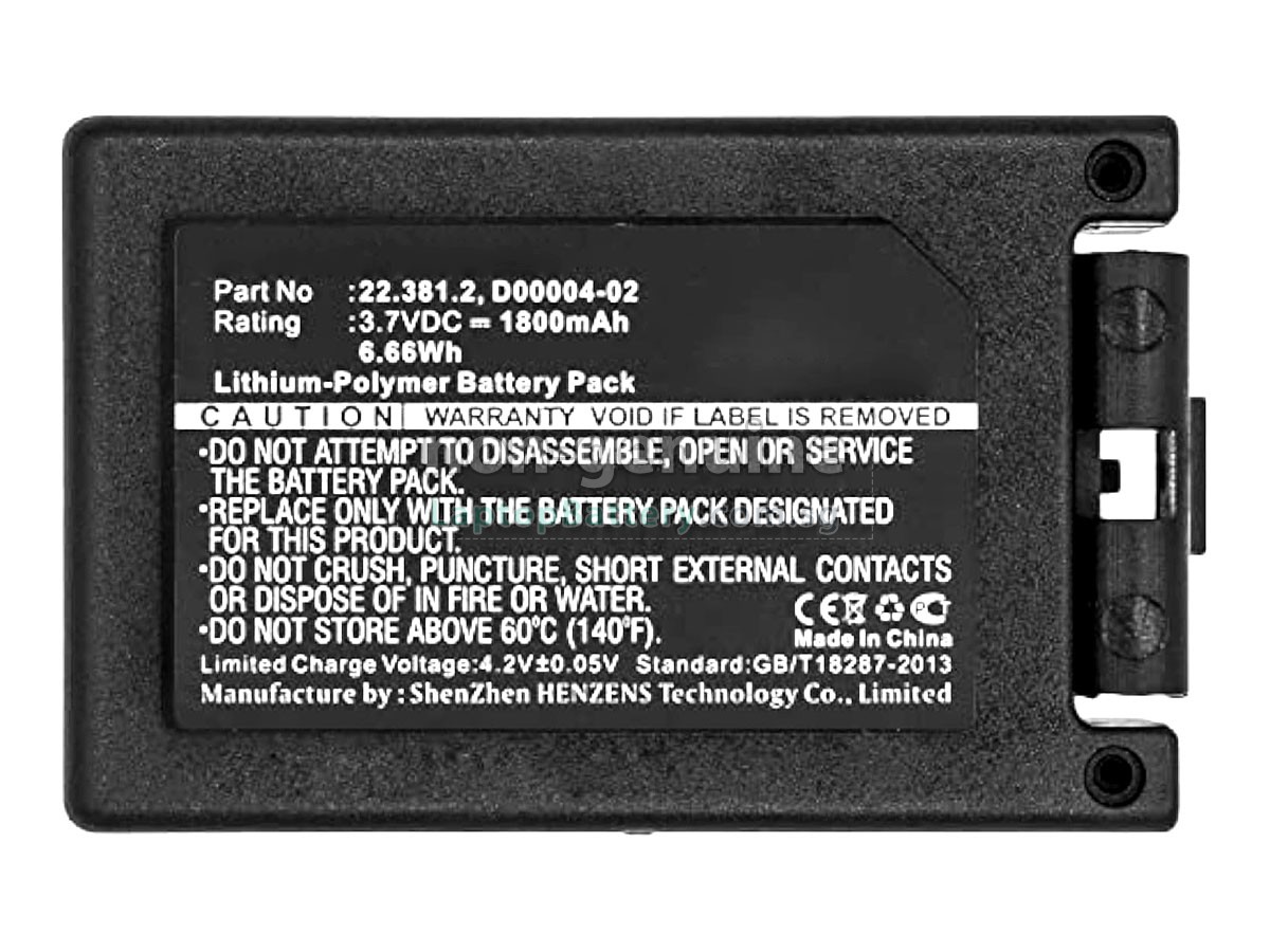 Buy with confidence! Our Website is your source for high quality Teleradio batteries. This brand new 1800mAh(2 cells) replacement Teleradio 22.381.2 Li-Polymer battery is made with high quality cells from Samsung. Each replacement battery for Teleradio 22.381.2 has been tested on the Teleradio system before being dispatched and is 100% compatible with the original manufacturer's specification. When you buy our replacement Teleradio 22.381.2 battery, you're buying trust!