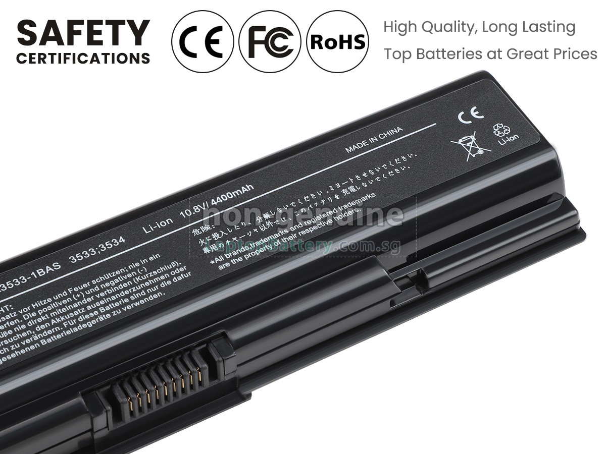 Welcome your patronage and thank you for purchasing this high quality replacement Toshiba PABAS099 laptop battery at Laptopbattery.com.sg! Before placing an order, please make sure that the part number of your old Toshiba PABAS099 battery is listed as below and has the same shape as our replacement PABAS099 battery's images (please view the larger images for details).