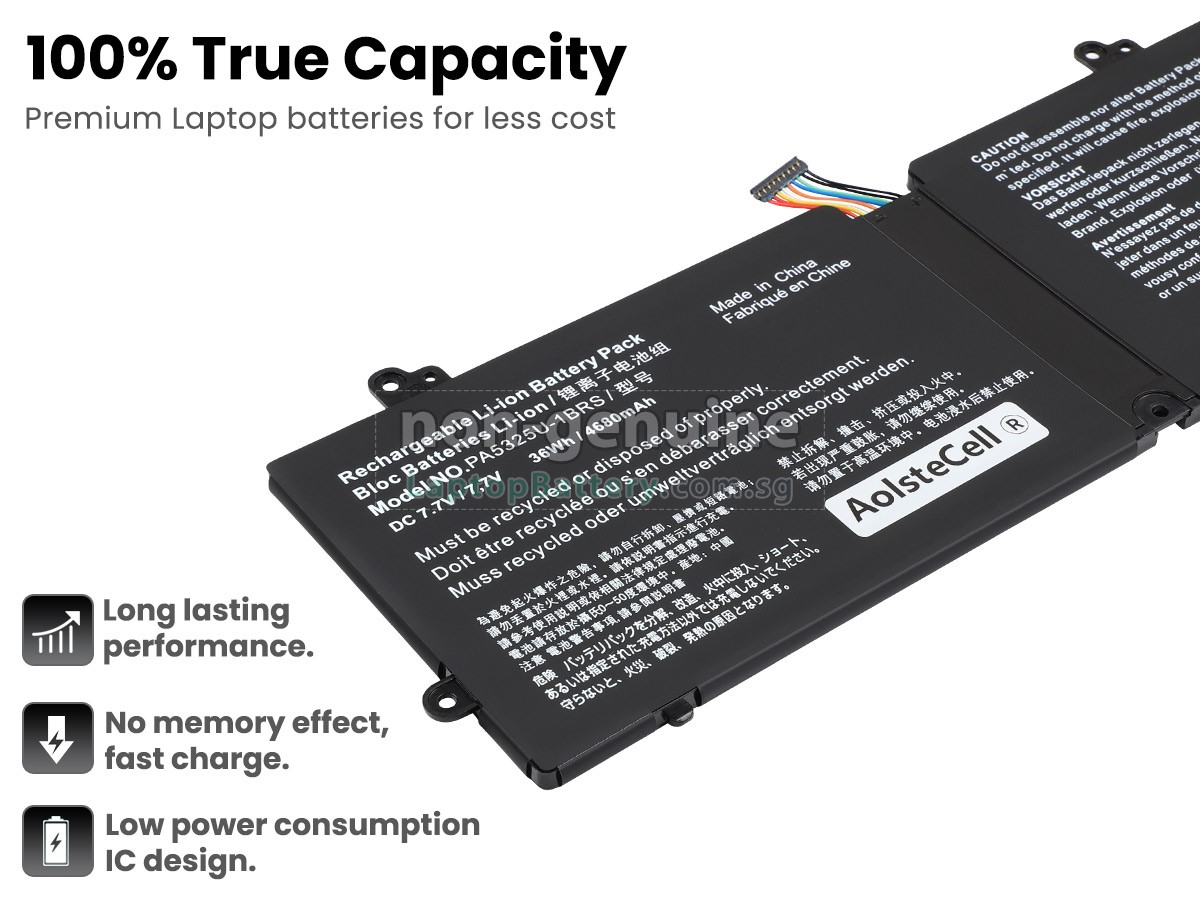 Buy with confidence! Our Website is your source for high quality Toshiba laptop batteries. This brand new 36Wh(2 cells) replacement Toshiba Portege X30 Li-Polymer battery is made with high quality cells from Samsung. Each replacement battery for Toshiba Portege X30 laptop has been tested on the Toshiba system before being dispatched and is 100% compatible with the original manufacturer's specification. When you buy our replacement Toshiba Portege X30 battery, you're buying trust!