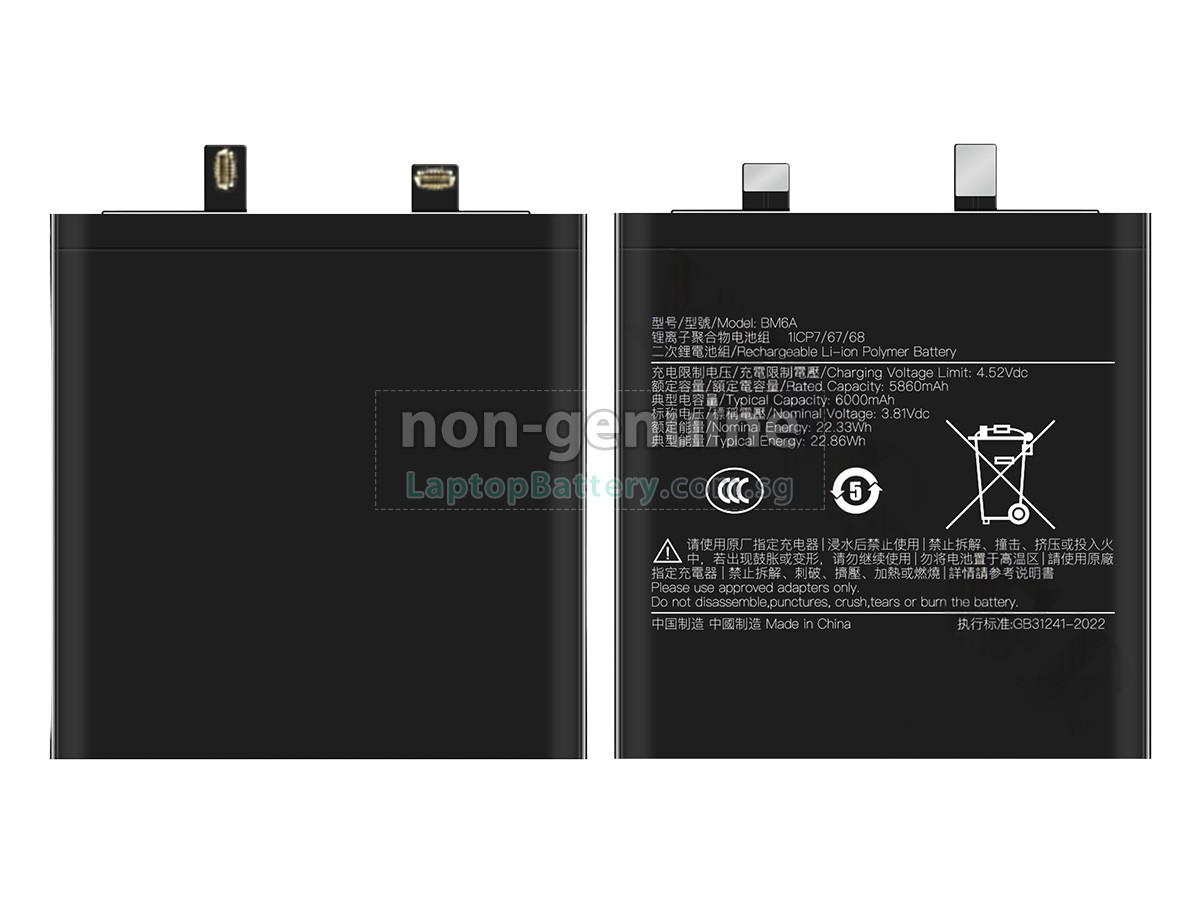 Welcome your patronage and thank you for purchasing this high quality replacement XiaoMi 15 ULTRA battery at Laptopbattery.com.sg! Before placing an order, please make sure that the part number of your old XiaoMi 15 ULTRA battery is listed as below and has the same shape as our replacement 15 ULTRA battery's images (please view the larger images for details).