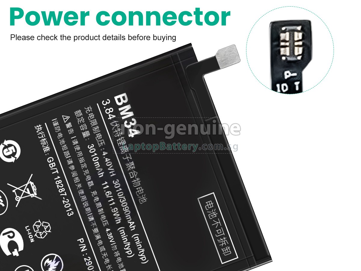 Buy with confidence! Our Website is your source for high quality XiaoMi batteries. This brand new 3090mAh(1 cells) replacement XiaoMi BM34 Li-ion battery is made with high quality cells from Samsung. Each replacement battery for XiaoMi BM34 has been tested on the XiaoMi system before being dispatched and is 100% compatible with the original manufacturer's specification. When you buy our replacement XiaoMi BM34 battery, you're buying trust!