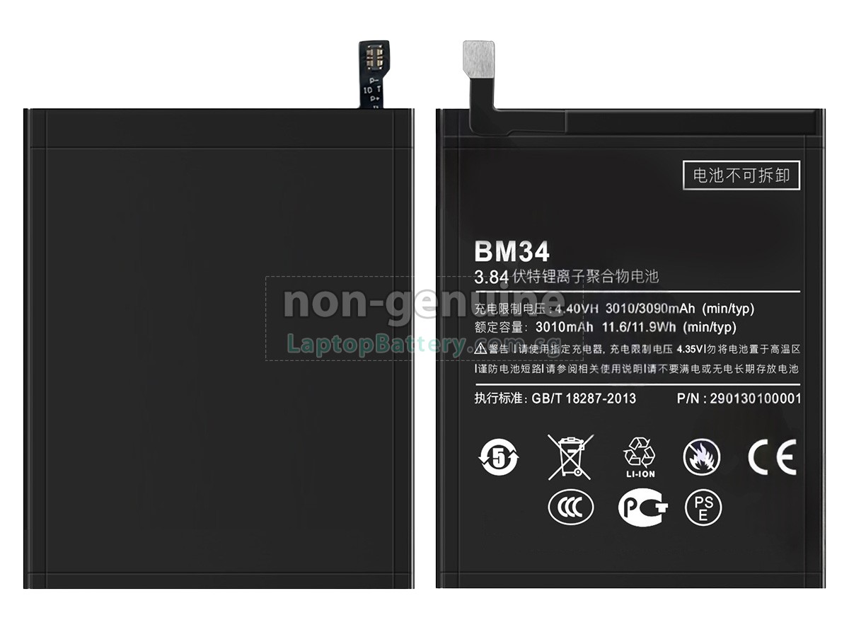 Welcome your patronage and thank you for purchasing this high quality replacement XiaoMi BM34 battery at Laptopbattery.com.sg! Before placing an order, please make sure that the part number of your old XiaoMi BM34 battery is listed as below and has the same shape as our replacement BM34 battery's images (please view the larger images for details).