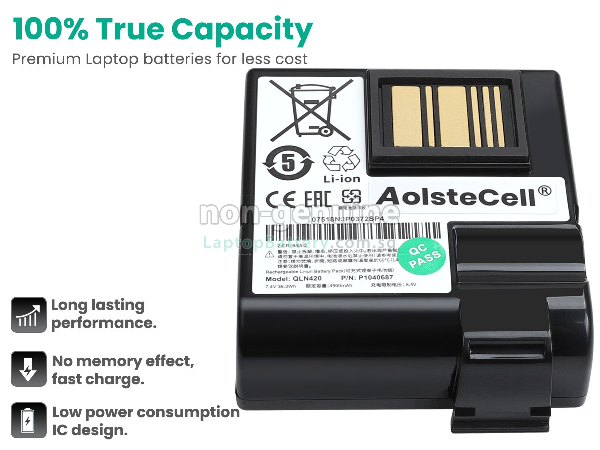 Buy with confidence! Our Website is your source for high quality Zebra batteries. This brand new 36.3Wh(4 cells) replacement Zebra P1040687 Li-ion battery is made with high quality cells from Samsung. Each replacement battery for Zebra P1040687 has been tested on the Zebra system before being dispatched and is 100% compatible with the original manufacturer's specification. When you buy our replacement Zebra P1040687 battery, you're buying trust!